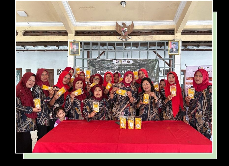 Beside being good for health, turmeric can also be used for beauty purposes, such as improving skin health, treating oily skin, fighting acne, brightening the skin, helping to reduce wrinkles, healing wounds, and removing dark circles under the eyes. Additionally, turmeric is also often used as a daily cooking ingredient. The activity began with a presentation on the tools and materials that would be used to make turmeric powder. One week before conducting the mentoring session for making this turmeric spice product, we from the UNDIP KKN Team II had already asked the residents to collect turmeric that had been cleaned and dried for 4-6 days so that on the day of the activity, the turmeric would be ready to be processed. After the dried turmeric is collected, it is ground using a cooper. While grinding the turmeric, the women help move it from the cooper into a basin before it is strained. There are also those who help filter the turmeric to make it finer. After all the turmeric was ground, the turmeric powder was put into plastic bags and distributed to the mothers present today. Turmeric that has been ground into powder can last 3-4 years if stored properly and not exposed to direct sunlight. This KKN program is expected to help the community make better use of the harvest available in the village. It is hoped that in the future, residents will be able to sell turmeric powder in the market and earn additional income, as well as open small and medium-sized enterprises (MSMEs). [Contributor: Tarissya Putri Ernanto]