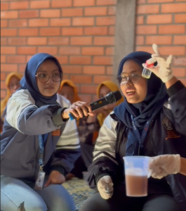 The activity begins with an introduction to the tools and materials for making dishwashing soap. Dish washing soap is made by cleaning banana peels and cutting them into small pieces, then mix the banana peels with water and blend until smooth. The finely ground banana peel is filtered and obtained banana cult juice, then prepare EDTA, Texapon, lime, salt, food coloring and essential oil. Prepare the first mixture, namely mixing the Texapon with water until the Texapon is completely dissolved, also add EDTA and salt then stir until it dissolves and the mixture thickens slightly like normal dishwashing soap. The filtered banana peel waste is mixed into the first mixture and added lime, food coloring and essential oil. Dishwashing soap is ready to use.