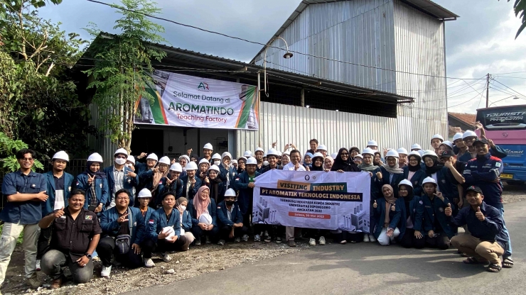 Semarang, May 20, 2025—A total of 66 students from the Industrial Chemical Engineering Technology (TRKI) Study Program at the Vocational School of Diponegoro University conducted an industrial visit to PT Aromatik Teknologi Indonesia (Aromatindo) on Tuesday, May 20, 2025. This activity is part of the implementation of experiential learning in the Technology-Based Companies course, which aims to introduce students to the real-world application of chemical technology in industries based on local natural resources.
